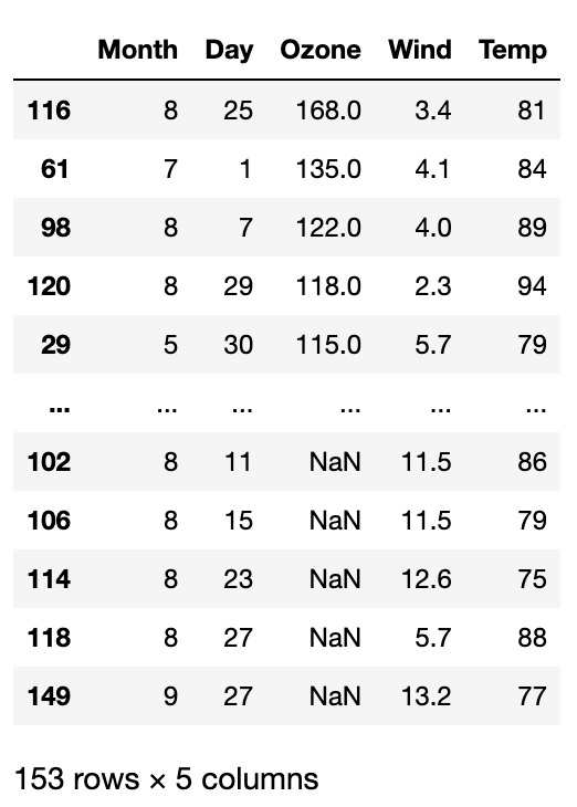 .sort_values(by='Ozone',ascending=False)